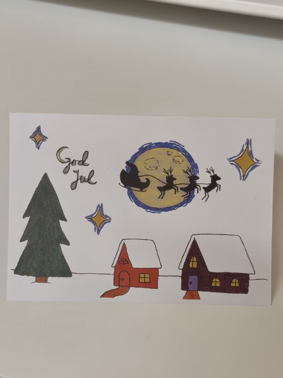 Julekort af eget design med snedækket landskab-motiv. Kuvert medfølger.